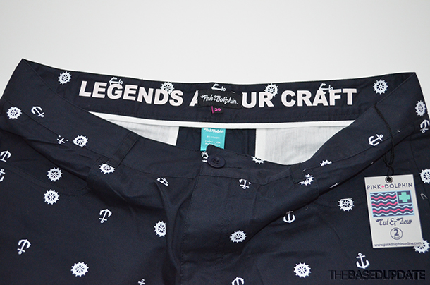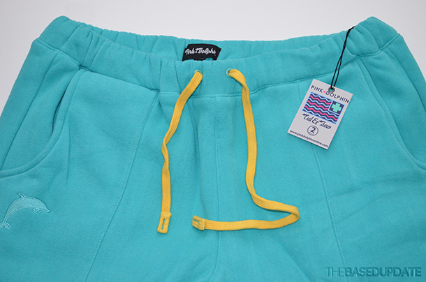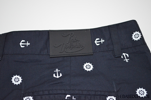 Design: These are a whole bunch of new items that now fall into the Pink Dolphin accessory section. Not only do you have your hats, key chains, belts, coin pouches, stickers and jewelry, but this time around there are socks, pants and sweats. While the pants and sweats may fall into the apparel section we are still putting them in this review. The hats have new looks with the mesh option and there are new colorways & designs on the snap and strap-back hats. The socks are your normal looking ‘High Socks’ with the script logo on soles with different pattern and color options while the pants are ‘Calvary Twill Pants’ with an all-over Anchor and Wheel print plus contrast chambray at the cuff in different color ways as well. Last are the sweats, they are not only a custom sweatpant with front and back pockets embroidered with the dolphin, they also have gold plating! Designs are on point and you will see more of that front and center with the next review!